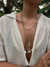 Cadena triple en acero con dos medallas en plata ley 950 contramarcadas con palabras llenas de poder.